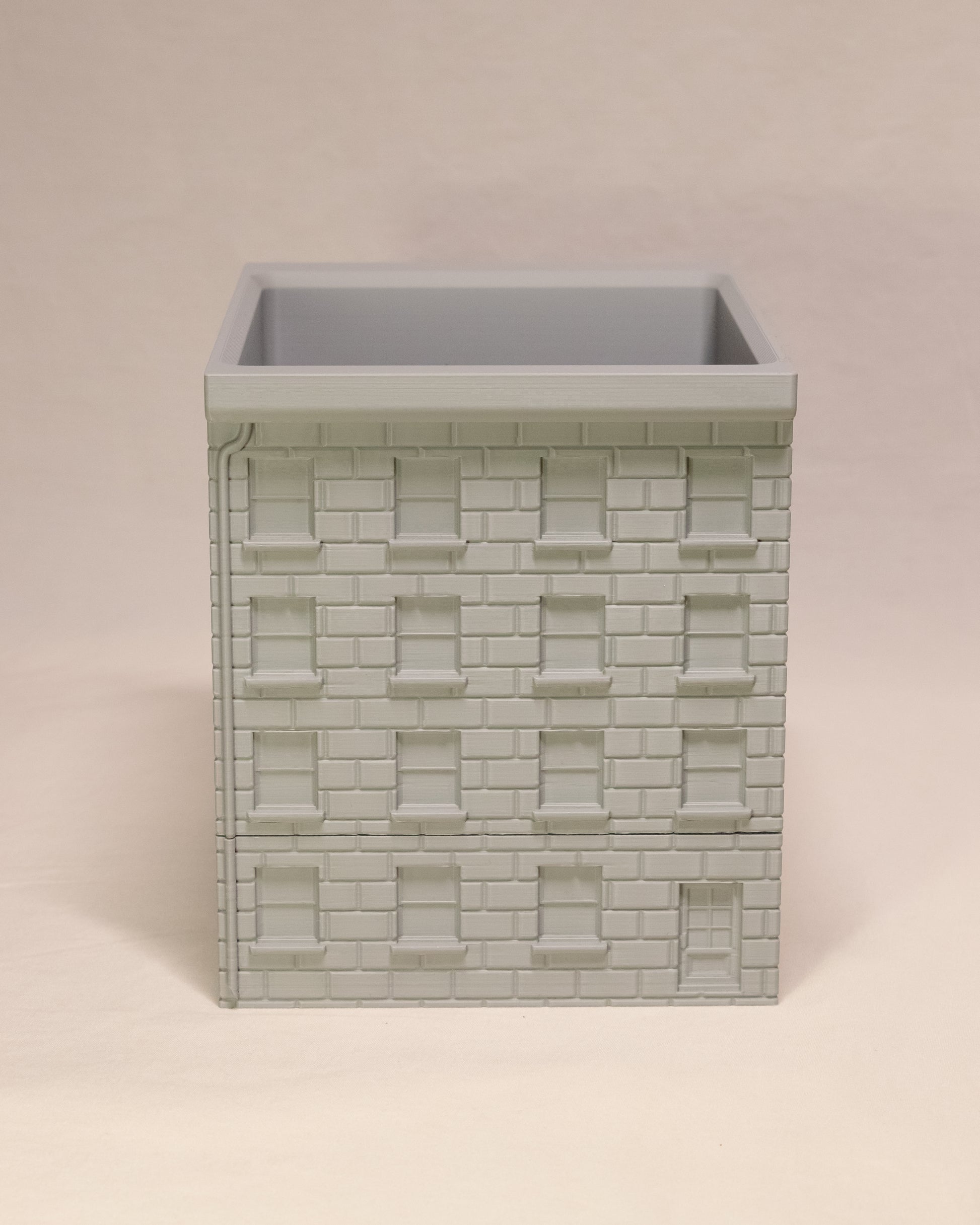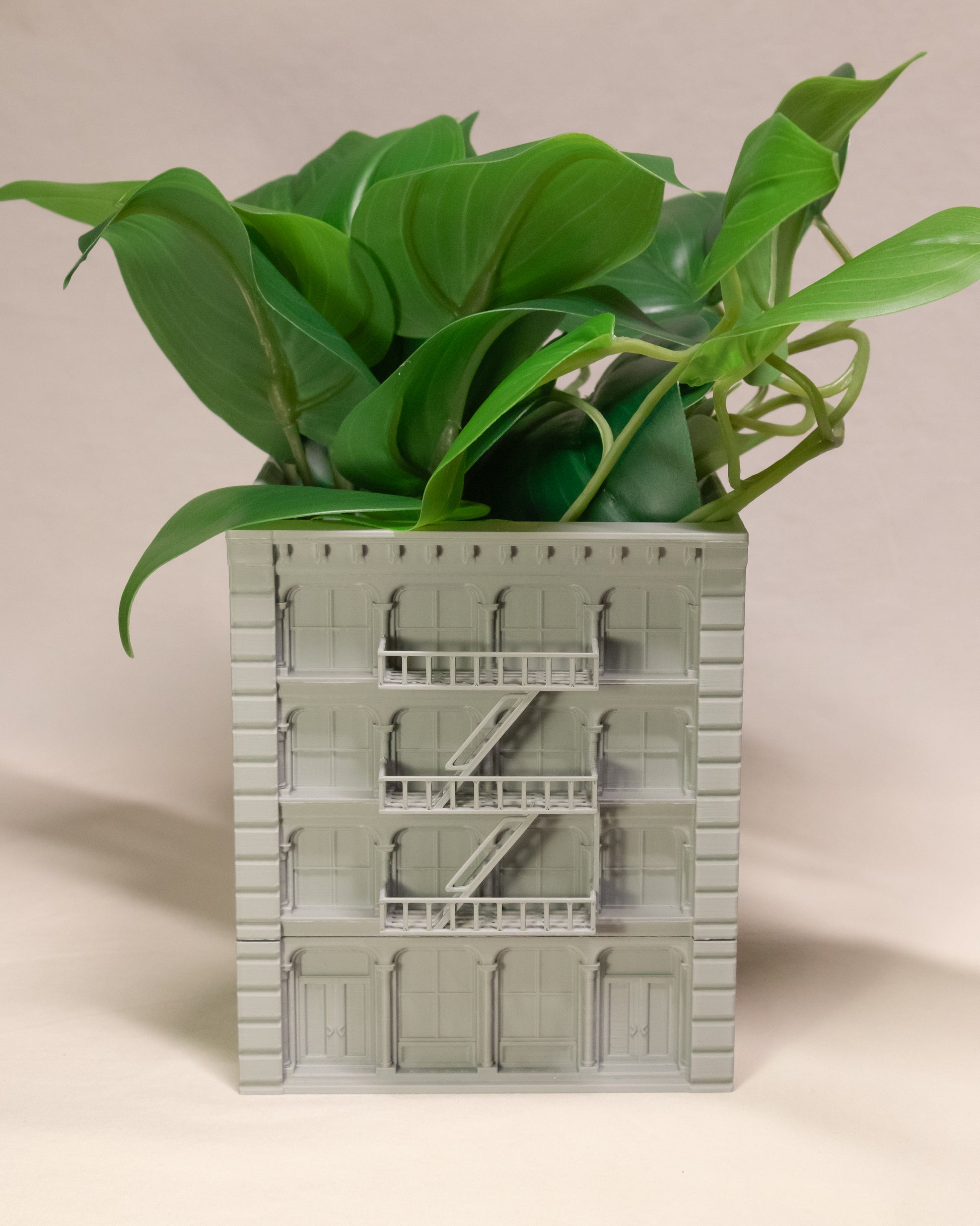 Inspired by the iconic cast iron historic district of Lower Manhattan, the Soho House brings architectural elegance to your indoor garden. This 3D-printed flower pot features large window-like openings and intricate details that capture the charm and craftsmanship of SoHo’s historic buildings. Made from eco-friendly PLA, it merges modern 3D-printing technology with timeless urban design.